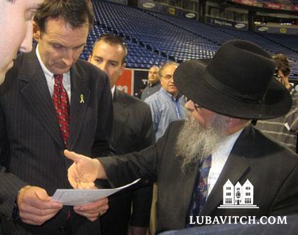 Amid stands of all things Israeli, was a Chabad-Lubavitch booth, where Director of Chabad-Lubavitch of the Upper Midwest, Rabbi Moshe Feller, exchanged greeting with Minnesota’s Governor Tim Pawlenty.